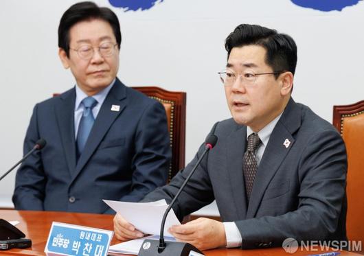 [서울=뉴스핌] 윤창빈 기자 = 박찬대 더불어민주당 원내대표가 22일 오전 서울 여의도 국회에서 열린 최고위원회의에서 모두발언을 하고 있다. 2025.01.22 pangbin@newspim.com