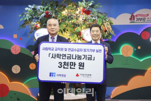 [이데일리 마켓in 박미경 기자] 사립학교교직원연금공단(사학연금)이 저소득층 학생 지원을 위해 사학연금 교직원의 기부를 통해 조성한 나눔기금 3000만원을 사랑의 열매에 전달했다고 22일 밝혔다. 전달한 나눔기금은 사랑의 열매를 통해 소아암 환아 3명의 치료비와 자립 청소년 5명의 교육비로 사용할 예정이다.