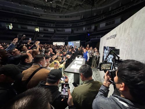 갤럭시 S25 엣지 공개에 모여든 취재진들 |