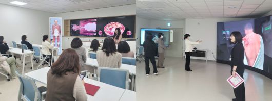 충남대 간호대에서 '감호교육에서의 생성형 AI를 활용한 시뮬레이션 시나리오 개발 및 타당도 검증'이라는 주제로 강의 및 실습이 이뤄지고 임상교육시뮬레이션센터에서 센터 전반 소개와 교육 장비를 활용한 프로그램을 실제로 경험하는 시간을 가졌다.