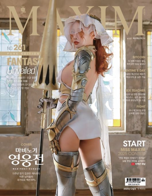 남성지 맥심(MAXIM, 한국 발행사 와이미디어) 표지에 아찔한 게임 코스프레 화보가 등장했다. 15주년을 맞은 인기 액션 RPG ‘마비노기 영웅전’(넥슨코리아)이 1월 16일 스물여섯 번째 신규 영웅 ‘네반’을 공개하면서 남성 잡지 맥심과 특별한 컬래버를 진행했다.