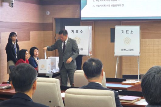 23일 열린 충남 아산시의회 홍성표 의장의 사임 투표가 부결됐다.