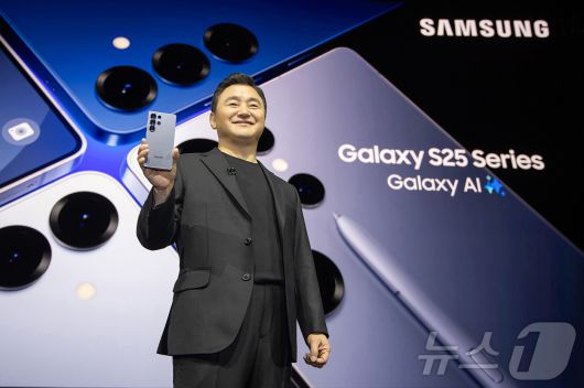 노태문 삼성전자 MX사업부장 사장이 22일(현지시간) 미국 새너제이 SAP센터에서 열린 '갤럭시 언팩 2025(Galaxy Unpacked 2025)' 행사에서 '갤럭시 S25 시리즈'를 공개하고 있다. (삼성전자 제공) 2025.1.23/뉴스1 |