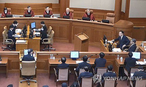 (서울=연합뉴스) 권희원 이미령 전재훈 황윤기 기자 = 12·3 비상계엄 사태로 탄핵소추와 수사, 재판에 내몰린 윤석열 대통령과 김용현 전 국방부 장관이 23일 헌법재판소 대심판정에서 탄핵심판 피청구인과 증인으로 다시 만났다.