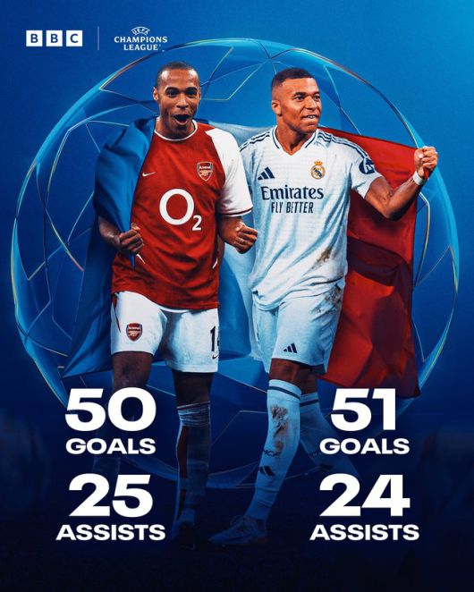 이번 잘츠부르크전 득점은 음바페의 UCL 통산 51호 골이었다. 통산 50득점이던 프랑스 대표팀 선배 티에리 앙리를 넘었다.
