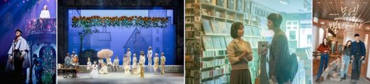 (왼쪽부터) 뮤지컬 ‘시라노’·‘베르테르’ 공연 장면, 영화 ‘말할 수 없는 비밀’ 스틸컷, 드라마 ‘모텔 캘리포니아’ 포스터. 사진 | CJ ENM, 하이브미디어코프, MBC |