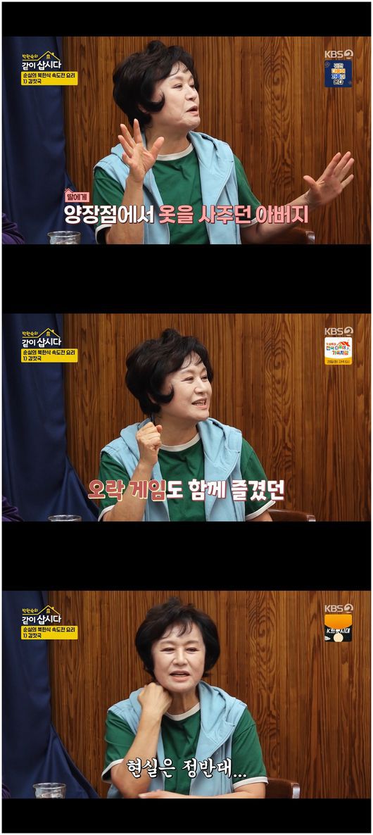 23일 방영한 KBS2TV ‘박원숙의 같이 삽시다 시즌3’에서는 신계숙, 이순실과 함께하는 즐거운 저녁 식사 시간을 가졌다. 신계숙은 이순실에게 "부친은 어떤 분이었냐"라고 물었다. 이순실은 “우리 아버지는 군인이셨는데, 밥상 앞에서 어머니를 욕하는 걸 자랑스러워하는 그런 아버지였다. 북한은 다 그랬다”라며 껄껄 웃어 보였다.