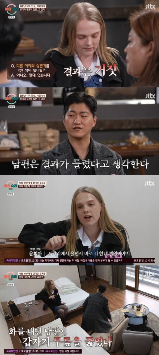 이에 남편은 "아니다. 절대 없다"고 답했지만 이는 '거짓'으로 나왔고, 아내는 큰 충격을 받았다.