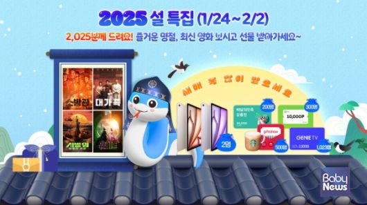 설 특집관 대표 이벤트인 '2025분께 드려요!’는 '소방관’, '대가족’, '시빌 워’ 등 인기 영화 14편 중 한 편 이상을 구매하면 응모할 수 있다. 이벤트에 참여한 고객 중 추첨을 통해 총 2025명에게 아이패드 에어 6세대 13인치, 배달의민족 상품권, 네이버페이 포인트 등 실생활에서 유용한 경품을 제공한다. 이벤트 응모는 해당 콘텐츠를 구매한 후 TV 화면의 이벤트 팝업이나 지니 TV 모바일에서 가능하다.