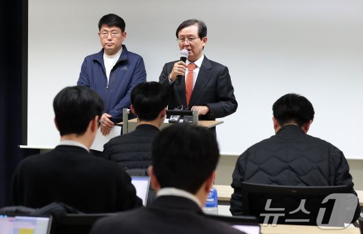 (서울=뉴스1) 김성진 기자 = 윤석열 대통령 측 윤갑근 변호사가 25일 서울 서초구 스페이스쉐어 강남역센터에서 검찰의 구속영장 연장 재신청 관련 입장 발표 기자회견을 하고 있다. 2025.1.25/뉴스1ssaji@news1.krCopyright ⓒ 뉴스1. All rights reserved. 무단 전재 및 재배포, AI학습 이용 금지.