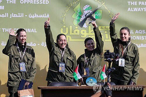 하마스는 이날 오전 가자지구 중심도시 가자시티의 팔레스타인광장에서 국제적십자위원회(ICRC)를 통해 리리 알바그(19), 카리나 아리에브(20), 다니엘라 길보아(20), 나마 레비(20) 등 인질 4명을 이스라엘군에 인계했다.