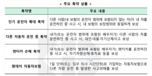 삼성화재 등 보험사들은 '임시운전자 특약'을 판매하고 있다. 대부분 이 특약은 가입 후 24시간 후에 효력이 발생하지만 가입 후 바로 효력이 발생하는 상품도 있다. 삼성화재 '실시간 임시운전자 특약'은 가입 즉시 효력이 발생한다.