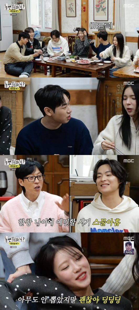 그 중에서도 이미주가 어디에 앉아야 할지 우물쭈물 하는 상황. 승헌쓰가 자리를 만들어주며 송건희 옆자리를 이미주에게 내줬다. 이미주는 수줍어하면서도 거절하지 않았고 승헌쓰와 '꺄르르' 웃음을 터트리며 실소를 자아냈다.