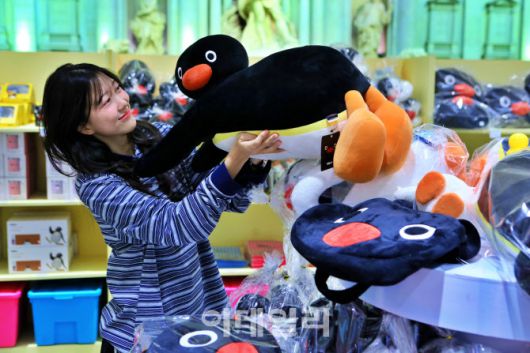 '핑구' 팝업스토어에서는 인기 클레이 애니메이션 '핑구' 캐릭터를 활용한 다양한 굿즈를 만나볼 수 있다.