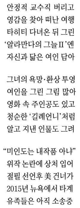 상처받은 천경자는 절필 선언을 하고 큰딸이 있는 미국으로 건너갔습니다. 그리고 서울시립미술관에 자식처럼 소중히 간직한 작품 93점을 기증했죠. 그는 2015년 고국이 아닌 뉴욕에서 타계했습니다.