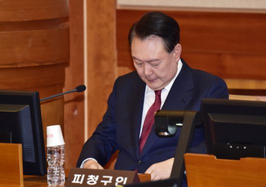 헌법재판소 탄핵심판에 출석한 윤석열 대통령 /사진=임한별(머니S) |