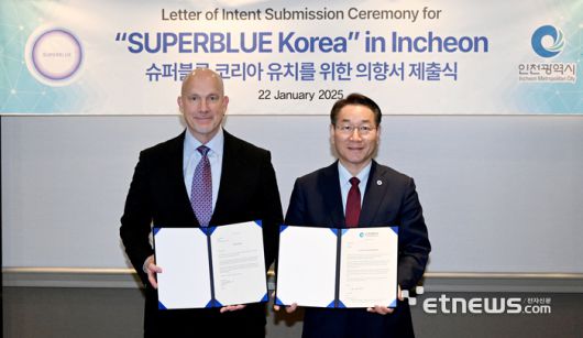 인천광역시는 최근 미국 워싱턴 D.C. 하얏트 리젠시 호텔에서 다니엘 돌란 슈퍼블루 최고경영자(CEO)로부터 세계적인 몰입형 미디어아트 전시장 '슈퍼블루 코리아'를 인천에 유치하는 의향서를 전달받았다고 27일 밝혔다.