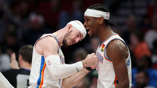 ▲ 포틀랜드 트레일블레이저스와의 경기에서 오클라호마시티 선더 샤이 길저스알렉산더 (오른쪽)