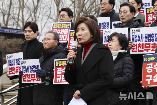 [서울=뉴시스] 한재혁 기자 = 나경원 국민의힘 의원은 27일 윤석열 대통령의 구속 기소에 대해 "법원이 부실 기소의 위법성을 철저히 심리해야 한다"라고 밝혔다.