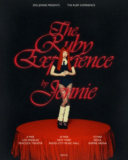 제니는 첫 번째 솔로 정규 앨범 ‘루비’ 발매를 기념해 ‘더 루비 익스피리언스(The Ruby Experience)’ 쇼를 미국 로스앤젤레스(3월 6일, 피콕 극장)와 뉴욕(3월 10일, 라디오시티 뮤직홀), 서울(3월 15일, 인스파이어 아레나)에서 진행된다.