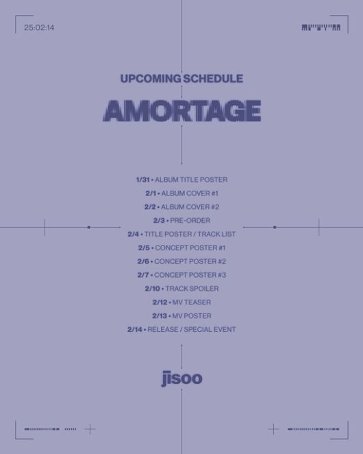 지수는 오는 2월 14일 오후 2시 국내외 전 온라인 음원 사이트를 통해 미니앨범 'AMORTAGE(아모르타주)'를 발매한다.