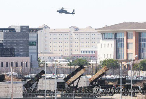 주한미군 기지에 배치된 패트리엇 방공미사일 |