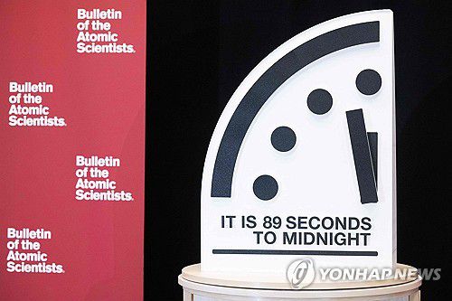 미국 핵과학자회(BSA)는 28일(현지시간) '지구 종말 시계'의 초침을 자정 89초 전으로 맞췄다고 밝혔다.