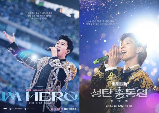 ‘임영웅 | 아임 히어로 더 스타디움’(왼쪽)과 ‘정동원 스페셜 콘서트: 성탄총동원’ 포스터. |