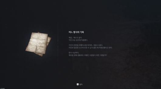 서사를 풀어나가는 방식도 소울라이크와 비슷한 면이 있습니다. 먼저 다크 판타지 기반의 암울한 분위기로 플레이어의 호기심을 끌어냅니다. 그러면서도 이야기 자체는 중심이 되는 큰 가지만을 아주 간결하게 다룹니다. 그 외 전반적인 세계관에 대해서는 플레이어가 맵 디자인, 대사, 아이템 등 각종 요소를 찾아다니며 단서를 수집하고 유추해야 합니다.