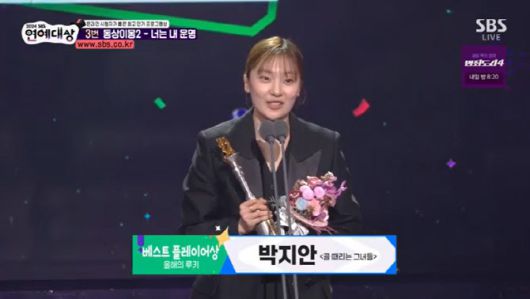 ‘골 때리는 그녀들’ 멤버들을 위한 수상 시간도 마련됐다. 베스트 플레이어상 부문. 베스트 플레이어상은 올해의 MVP와 올해의 루키로 나눠 시상했다. 올해의 MVP는 구척장신 허경희가 수상을 했으며 올해의 루키는 올해 ‘골 때리는 그녀들’에 데뷔해 신인 같지 않은 뜨거운 활약을 보여준 액셔니스타 박지안이 받았다.
