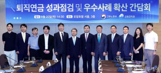 (서울=뉴스1) 박지혜 기자 = 이정식 고용노동부 장관과 이복현 금융감독원장이 20일 오후 서울 중구 로얄호텔에서 열린 퇴직연금 성과점검 및 우수사례 확산 간담회에 앞서 참석자들과 기념 촬영을 하고 있다. 2024.6.20/뉴스1 Copyright (C) 뉴스1. All rights reserved. 무단 전재 및 재배포, AI학습 이용 금지. /사진=(서울=뉴스1) 박지혜 기자 |