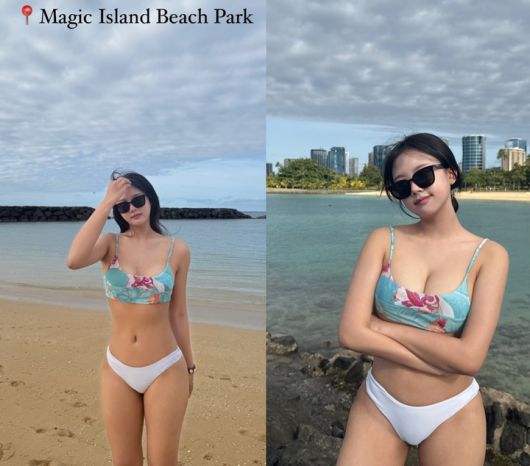 특히 매직아일랜드비치파크에서는 흰색 하의와 하늘색 상의로 구성된 비키니를 입고 늘씬한 몸매를 뽐내 눈길을 끌었다.