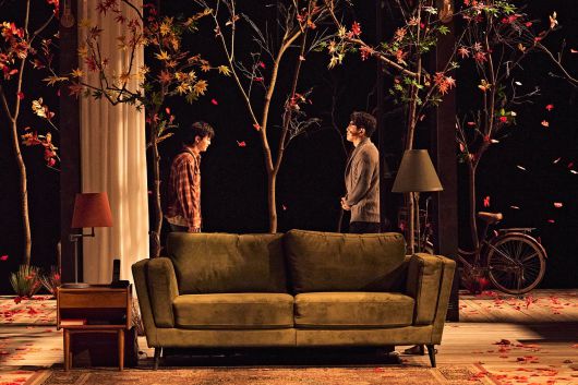 ‘바닷마을 다이어리’와 ‘붉은 낙엽’은 전혀 색깔이 다른 연극이지만, 화자 격인 배우가 관객을 향해 말을 걸 듯 발화하는 독백, 한정된 무대 공간 안에 자주 중첩되는 다른 시공간, 배우의 감정 과잉을 극도로 절제함으로써 관객을 더욱 몰입시키는 연출 방식 등 연출가 이준우의 개성이 드러나는 것이 공통점이다.