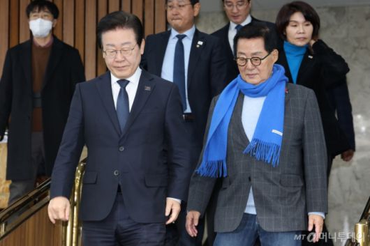 (서울=뉴스1) 이광호 기자 = 이재명 더불어민주당 대표와 박지원 의원이 6일 오전 서울 여의도 국회에서 열린 중진의원들과의 간담회에 참석하고 있다. 2025.1.6/뉴스1 Copyright (C) 뉴스1. All rights reserved. 무단 전재 및 재배포, AI학습 이용 금지. /사진=(서울=뉴스1) 이광호 기자 |