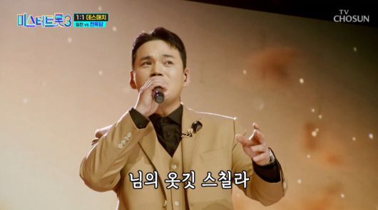 30일 방송된 '미스터트롯3'에서 지옥의 일대일 데스매치가 펼쳐진 가운데 천록담이 가수 이정을 지워낸 듯한 완벽에 가까운 무대로 안방을 강렬하게 압도했다.