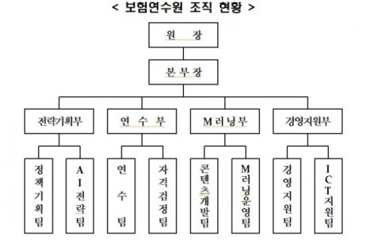 보험교육의 전문성 강화 및 교육품질 개선을 통합 관리하기 위해 기존 연수기획팀 및 연수운영팀을 연수팀으로 일원화해 시너지 효과를 높였다.