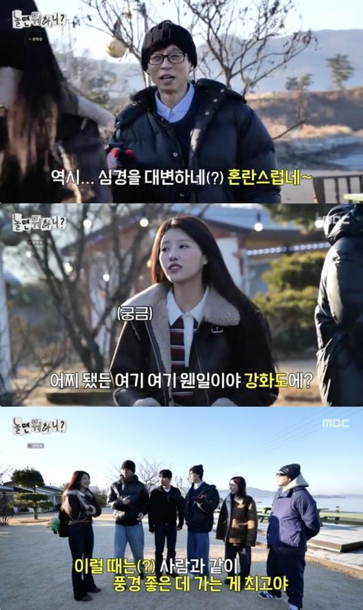 유재석은 “본인 사생활이니까 딥하게 안 들어갈게. 우리도 신경 쓸게 많아. 이럴 때는 사람들과 좋은 풍경 좋은 데 가는 게 최고야”라고 말했고, 멤버들은 끝자리에 서 있는 미주를 가운데로 데려오면서 “외로움 느끼지 않게 가운데 있어”라면서 끝까지 미주를 놀려 웃음을 자아냈다./seon@osen.co.kr