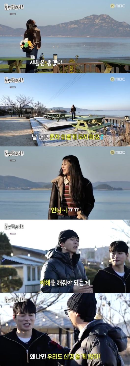 1일 오후에 방송된 MBC 예능프로그램 ‘놀면 뭐하니?’에서는 멤버들이 강화도로 떠난 모습이 그려졌다. 이날 미주는 먼저 오프닝에 등장해 “새들은 좋겠다. 자유로워서”라며, “날 너무 혼자 외롭게 두지 마요”라고 말해 눈길을 끌었다.