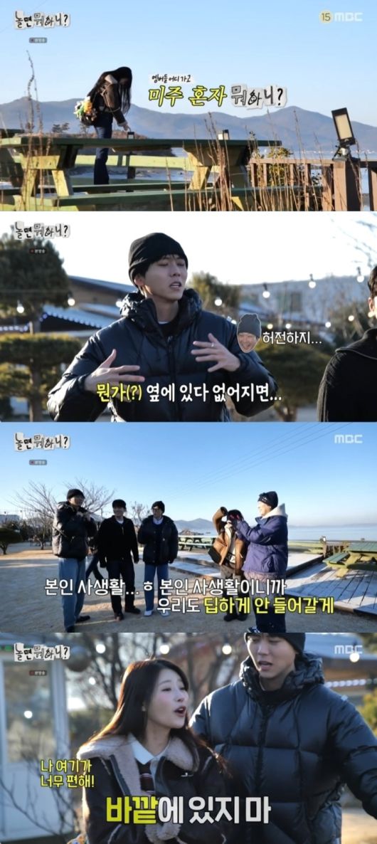 이날 이미주는 혼자 강 위에 떠 다니는 오리 떼를 바라보며 "새들은 자유로워서 좋겠다. 날 너무 혼자 외롭게 두지 마요. 나 괜찮아요"라며 훌쩍이는 척 했다.