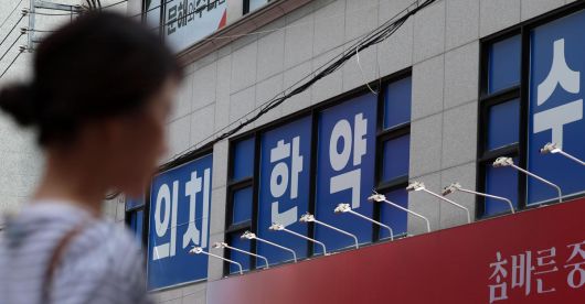 서울 강남구 대치동 학원가의 의대 입시 관련 학원 앞을 한 시민이 지나가고 있다. 뉴시스 |
