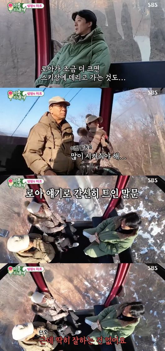 이후 도착한 스키장. 세 사람은 어김없이 전망대로 향하는 케이블카에서 말 없이 이동했다. 또 다시 딸 로아 이야기를 꺼낸 이동건은 “로아가 조금 더 크면 스키장에 데리고 가는 것도”라고 말문을 열었다.