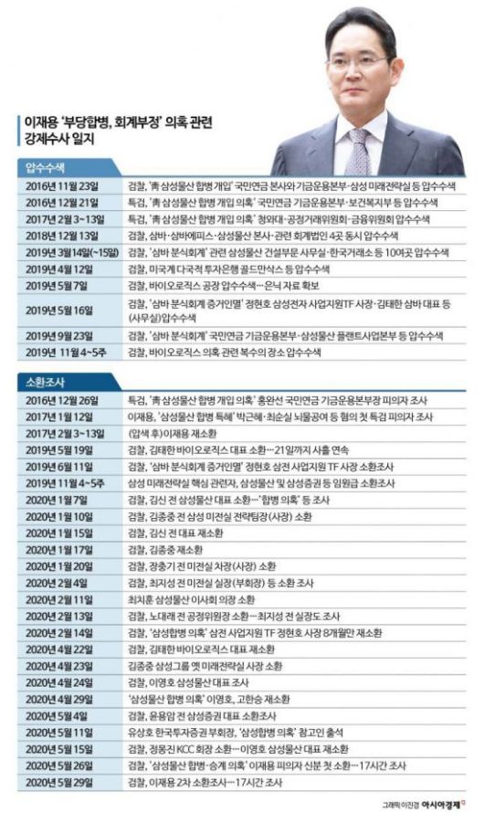 이 회장에 대한 수사는 2018년 11월 금융위원회 산하 증권선물위원회가 김태한 삼성바이오로직스(삼바) 사장을 분식회계 혐의 고발하면서 시작됐다. 사건은 서울중앙지검 특수2부에 배당됐다. 이후 2020년 9월 수사 결과 발표까지 21개월이 걸렸다. 이 기간에 이 회장 측 변호인단에 따르면 총 300여명을 860회 상당 조사하고 53곳을 압수 수색을 했다.