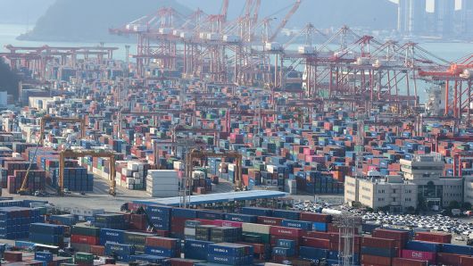 ▲ 3일 오전 부산항 신선대부두에 수출입 화물이 쌓여있는 모습