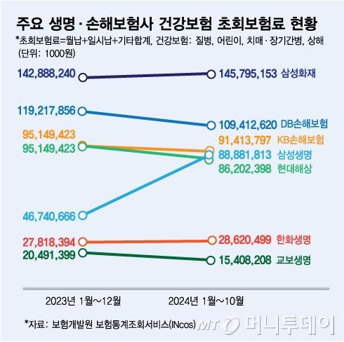 주요 생명·손해보험사 건강보험 초회보험료 현황/그래픽=김다나 |
