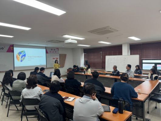 김혜연 하나루프 대표가 아폴로산업 탄소경영 집합교육 현장에서 강의 중이다/사진제공=K-서스테이너블 |