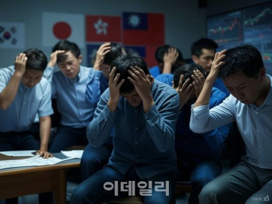일본 등 아시아 증시가 관세 인상 여파로 직격탄을 맞자 투자자들이 주가 하락으로 좌절하고 있다.(사진=그록2 이미지 생성) |