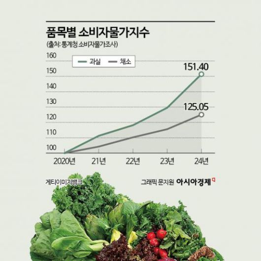 실제로 지난해에는 가파르다 할 만큼 체감뿐 아니라 실질 소비자 물가 상승률도 높았다. 통계청 국가통계포털에 따르면 지난해 소비자 물가지수는 102.63으로 전년(99.34) 대비 3.3% 상승했다. 코로나19가 한창이던 2021년 이후 3년 만에 가장 높은 상승률을 기록했다. 특히 과일·야채 등 체감 물가에 직접적인 영향을 미치는 품목들의 상승 폭이 컸다. 과일의 경우 소비자 물가상승률이 16.9%로 2004년 이래 20년 만에 가장 높았다. 채소 역시 8.2% 올라 2020년 이래 상승 폭이 가장 컸다.