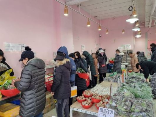 한파에도 손님이 붐비는 서울 영등포의 한 청과물 가게. 임온유 기자 |