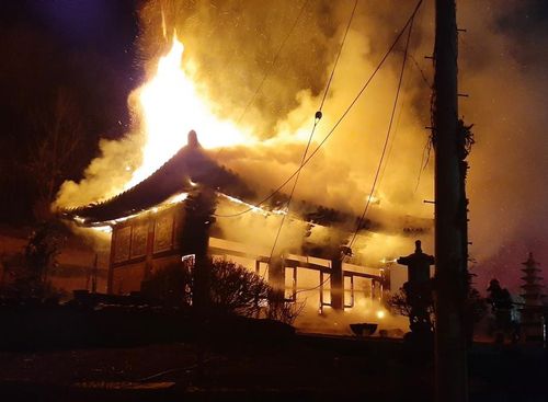 (안성=연합뉴스) 최종호 기자 = 3일 오후 8시 9분께 경기도 안성시 명륜동에 있는 조계종 사찰인 법계사에서 불이 났다.
