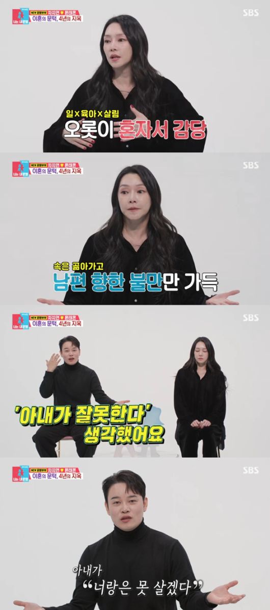 그러다 보니, 차지연은 지쳐갔다. 그는 "일과 육아, 살림까지 다 내가 해야 했다. 왜 전부 다 내가 해야 하는건지 불만이 생겼다. 남편은 남편대로 자기가 뭘 해야할지 모르니 답답해했다"며 이혼으로 몰아부쳐갔던 상황을 전했다.